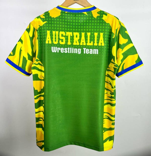 These premium qulity dri-fit Australian Wrestling Team shirt is sure to impress on and off the training mats. Made from premium material, for the most comfortable feel, yet performance enhancing moisture wicking, in Aussie green and gold.